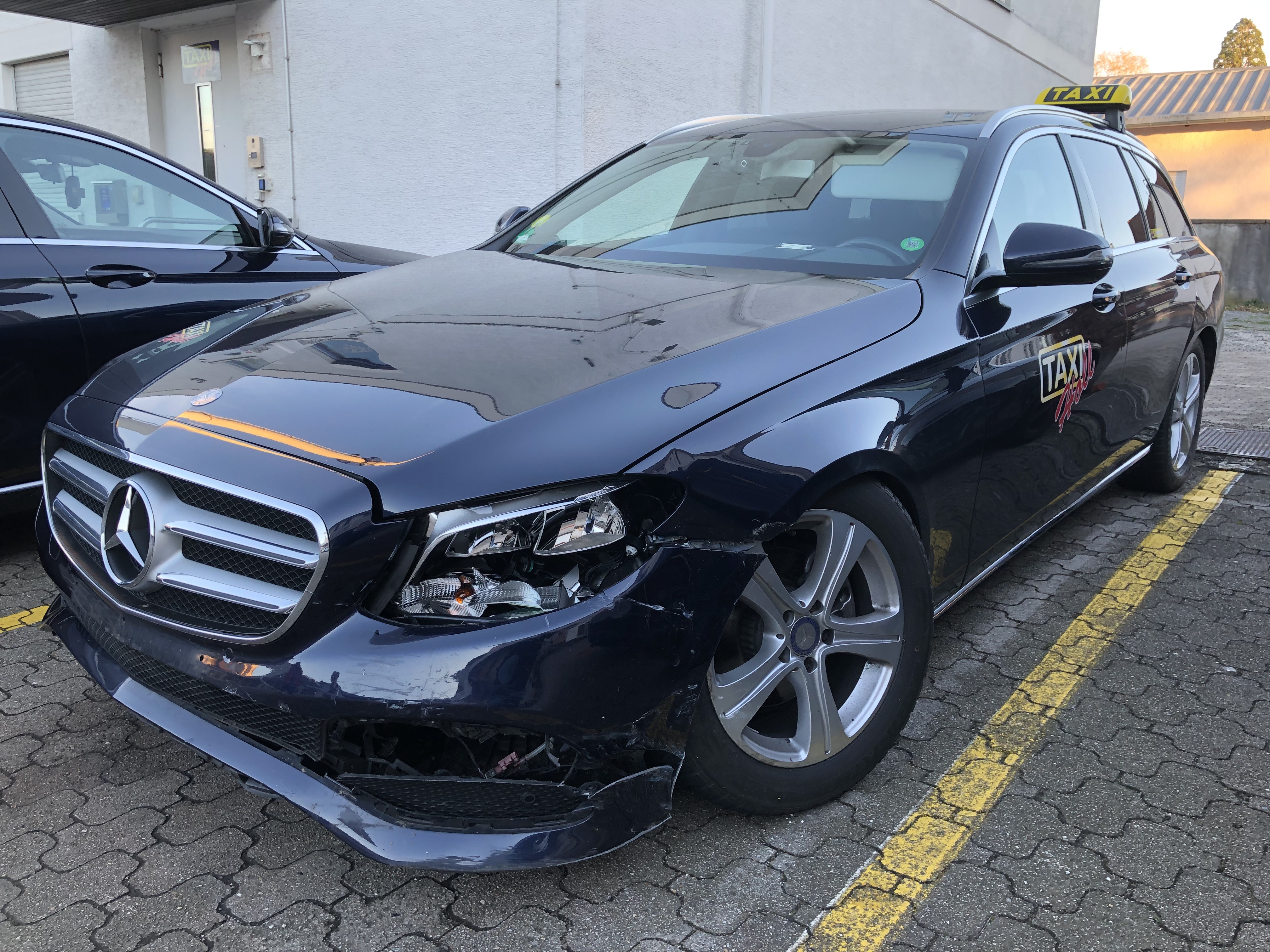 „Wahrscheinlich Totalschaden“: Das Taxi nach dem Zusammenstoß mit einem Raser. Foto: Holl AG